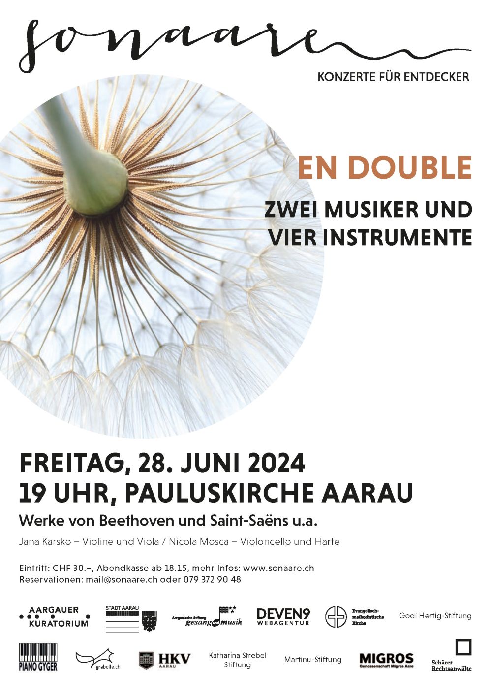 Die beiden bekannten Musikerpersönlichkeiten haben ein Programm voller Esprit von der griechischen Antike bis in die Gegenwart zusammengestellt. Das Besondere daran ist auch, dass sie auf verschiedenen Instrumenten spielen. Beide Musiker sind im Zürcher Kammerorchester beheimatet und suchen stets nach neuen Herausforderungen. Da der Solocellist Nicola neben dem Cello auch Harfenspiel studiert hat und die Geigerin seit ein paar Jahren auch eine enge Beziehung zur Bratsche führt, kam ihnen die Idee, alle vier Instrumente zu kombinieren. Das Ergebnis lässt sich hören und erleben. Gespielt werden u.a Werke von Beethoven, Satie und Saint-Saëns.