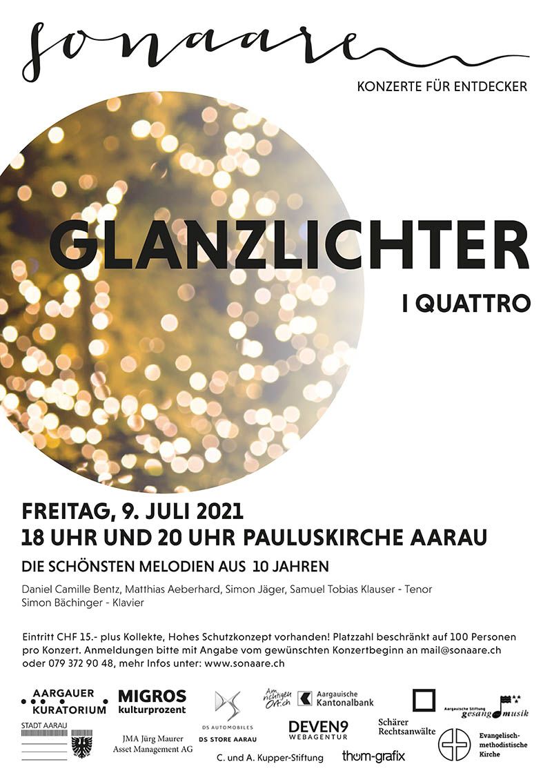 I QUATTRO begeistern seit 10 Jahren das Schweizer Publikum mit ihren Stimmen und ihrem Charme. Angefangen hat alles in der SRF Sendung «die grössten Schweizer Hits» wo sie das erste Mal einem breiteren Publikum bekannt wurden. Seit dem gingen sie auf zahlreiche Tourneen und gaben unzählige Konzerte mit über 200’000 Konzertbesucher*innen u.a. in «Das Zelt». Sie heimsten zwei Gold- und eine Platinauszeichnungen für die CD’s «Passione» & «Emozione» ein und waren Stammgäste in der «Schweizer Hitparade». Das Repertoire besteht aus Volksliedern, Evergreens und populären Melodien aus der Schweiz und aus bekannten Filmen. I QUATTRO sind vier ausgebildeten Tenöre, welche neben I QUATTRO alle eine Karriere auf Opern- und Musicalbühnen haben und auch freischaffend als Solisten, Vocalcoaches und Dirigenten engagiert sind.