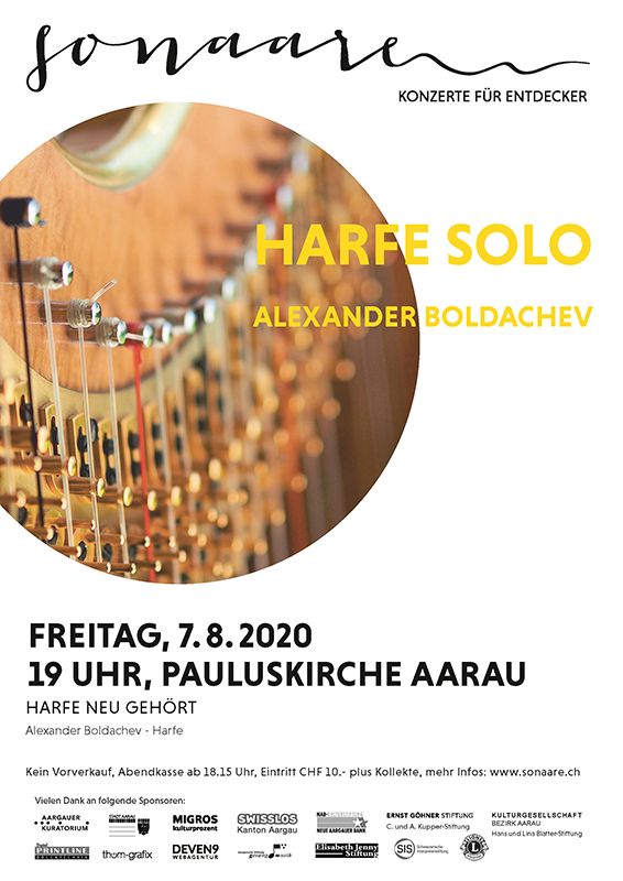 Den aus St. Petersburg stammenden Harfenisten Alexander Boldachev lernten wir letztes Jahr in einem Hauskonzert in Windisch kennen und es war uns klar, dass wir diesen grossartigen Künstler unbedingt unserem Sonaare-Publikum vorstellen müssten. Und er kam nach Aarau, obwohl seine zahlreichen Konzerte ihn in die ganze Welt führen.