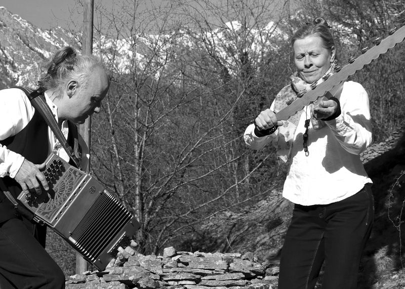 Mauro Garbani, Gesang, Organetto (norditalienisches diatonisches Akkordeon), Gitarre, Okarina // Esther Rietschin, Gesang, Alt- und Sopransaxophon, Akkordeon, Okarina, Perkussion
