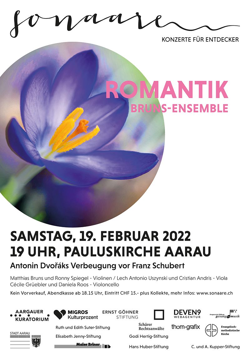 Matthias Bruns und Fraynni Rui – Violinen / Lech Antonio Uszynski und Cristian Andris – Viola / Cécile Grüebler und Daniela Roos – Violoncello