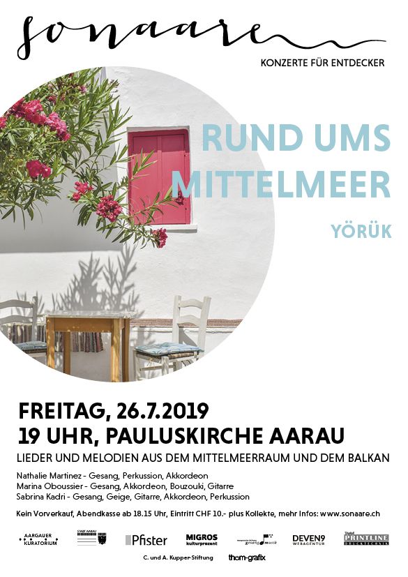 Die in Montpellier beheimatete Gruppe Yörük mit Sabrina Kadri, Nathalie Martinez und Marina Oboussier nahm das Publikum auf eine Reise rund ums Mittelmeer mit und erweckte so Erinnerungen an Ferien am Strand in Italien, Griechenland Frankreich, Spanien und auf dem Balkan.