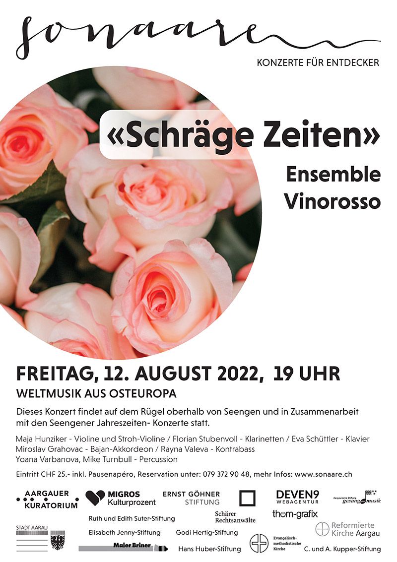 Dieses Konzert findet auf dem Rügel oberhalb von Seengen und in Zusammenarbeit mit der reformierten Landeskirche Aargau und den Seenger Jahreszeiten-Konzerte statt. Bei diesem Konzert ist eine Anmeldung notwendig und der Eintritt kostet inklusive Pausenapéro CHF 25.–.