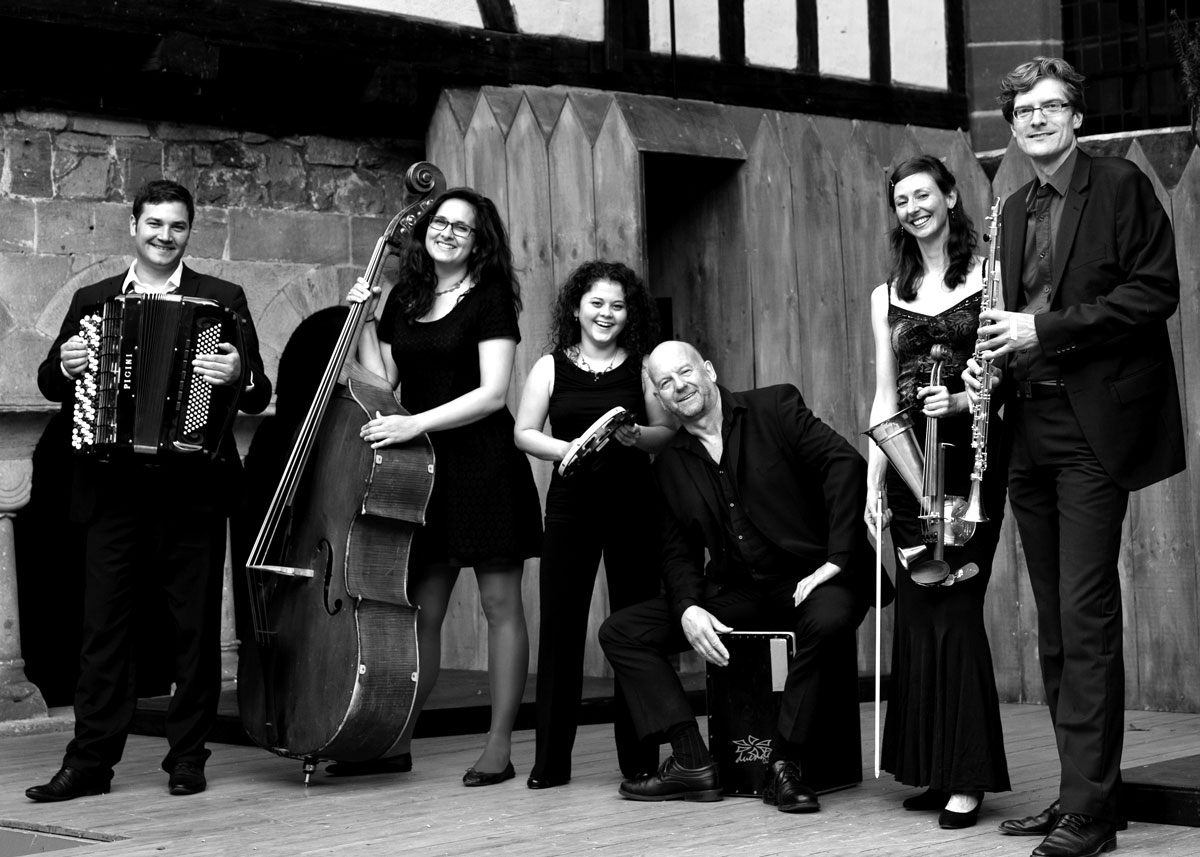 Maja Hunziker, Violine und Stroh-Geige // Florian Stubenvoll, Klarinette und Metallklarinette u.a. // Miroslav Grahovac, Bajan-Akkordeon // Rayna Valeva, Kontrabass // Yoana Varbanova und Mike Turnbull, Cajón, Darabouka, Zil, Udu u.a.